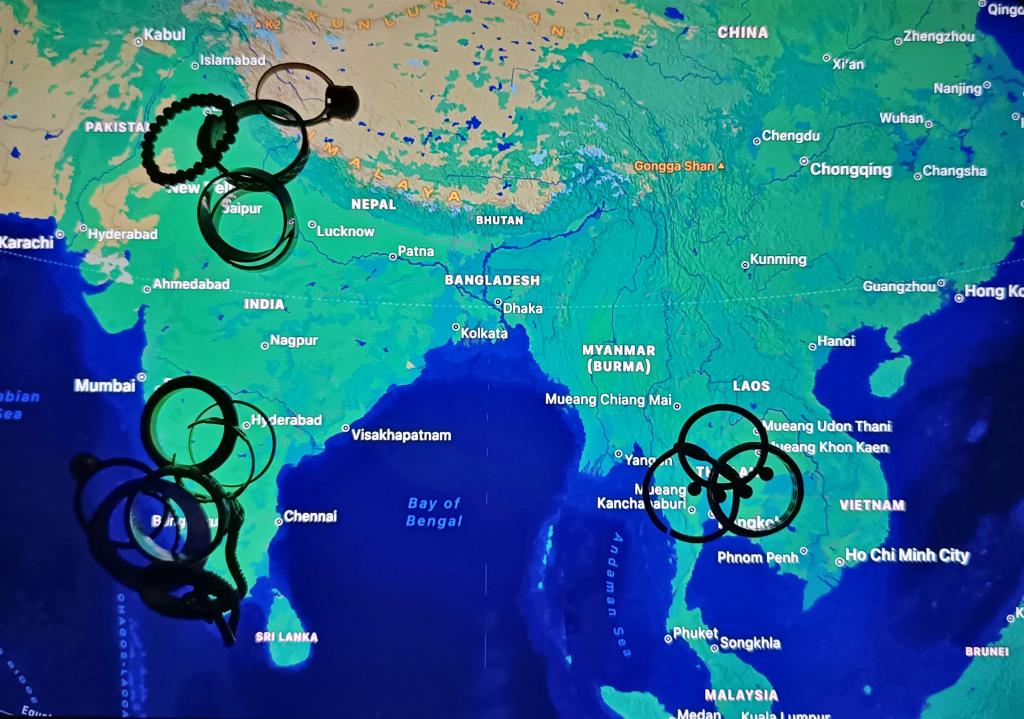 My rings from different cities and countries has given me an insight into the history of the areas they were made and sold in. I’ve realised that different places have different aesthetics/designs of rings which express their culture and how they want to present themselves to the world. Excluding common rings sold everywhere, the majority of rings sold in Thailand are very different from those in India. In my country itself, rings vary from north to south. You’ll find an abundance of fashion rings being sold in the south while there are more rings made with traditional designs and materials in the north.
